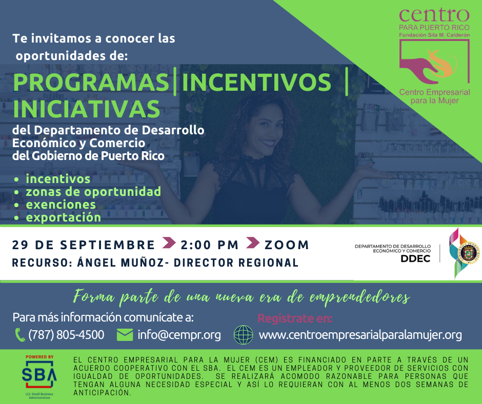 Está dirigido exclusivamente a mujeres emprendedoras y/o empresarias que desean graduarse con los mejores conocimientos sobre la creación y desarrollo de negocios en Puerto Rico.